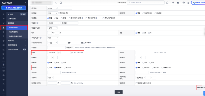 아까 [고객] → [회원 조회] → [회원 정보 조회]에서