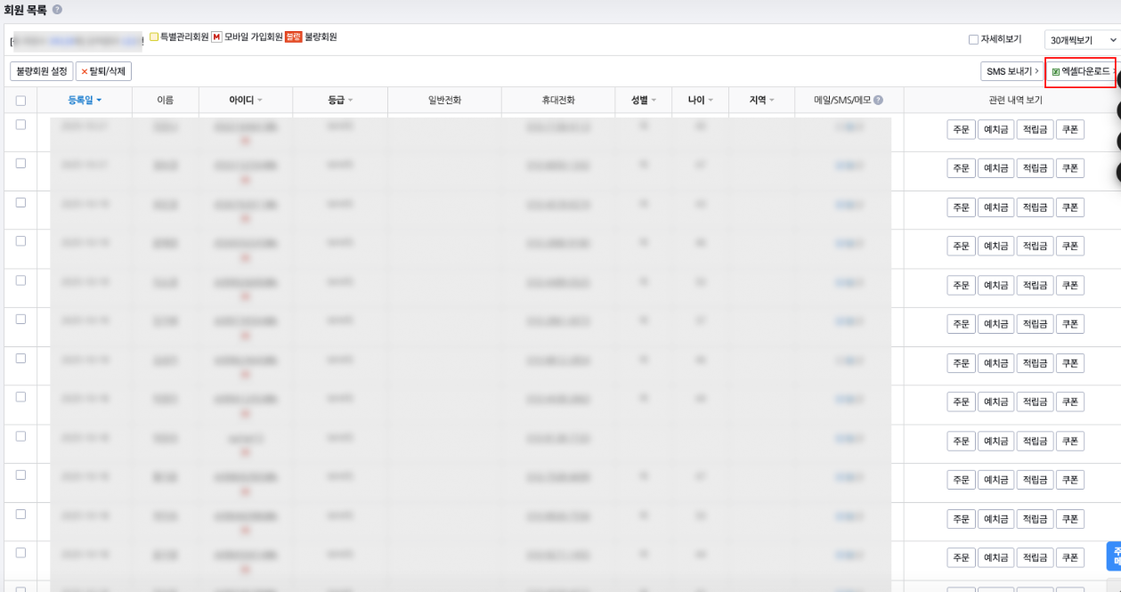 해당 회원들 정보가 담긴 엑셀을 기반으로