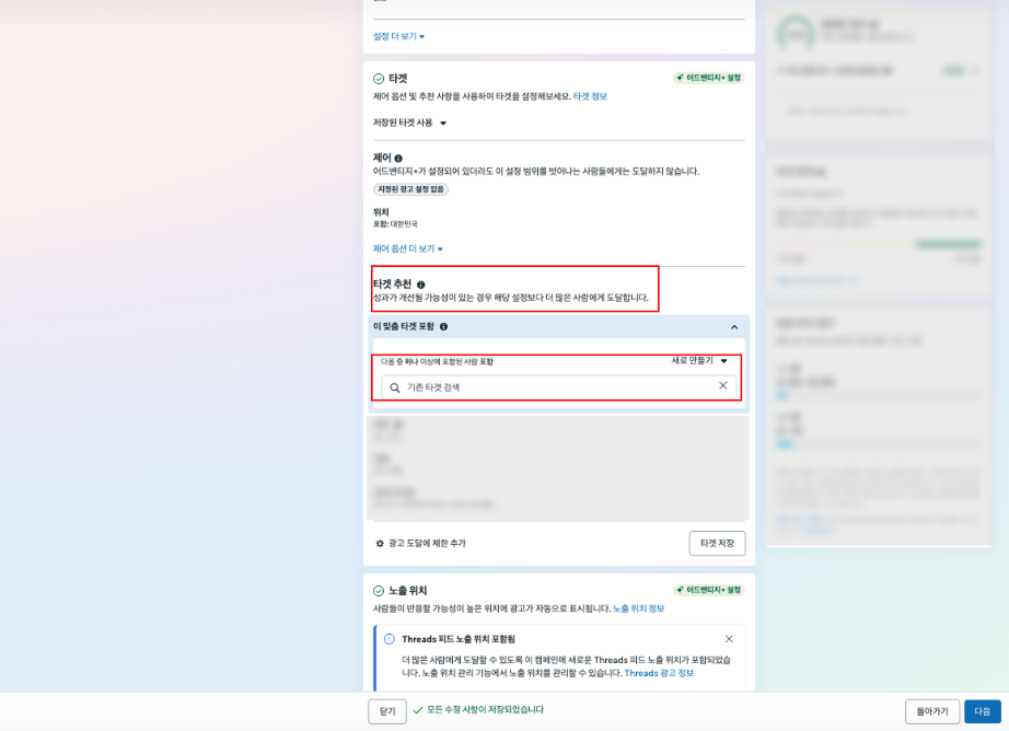 세트에서 [타겟 추천] → [기존 타겟 검색]