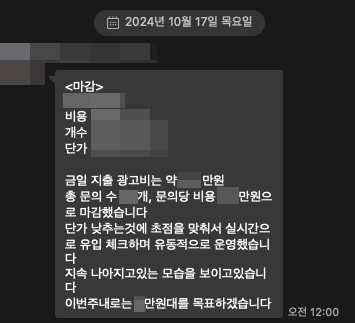 지난주, 한 달에 광고비만 약 2천만원을 썼지만,