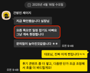 최근 인테리어 마케팅 문의를 남겨주시는 대표님을