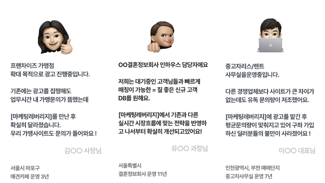 대표적으로 중고차, 결혼 정보 회사, 금융 등이 여기에 해당되죠.