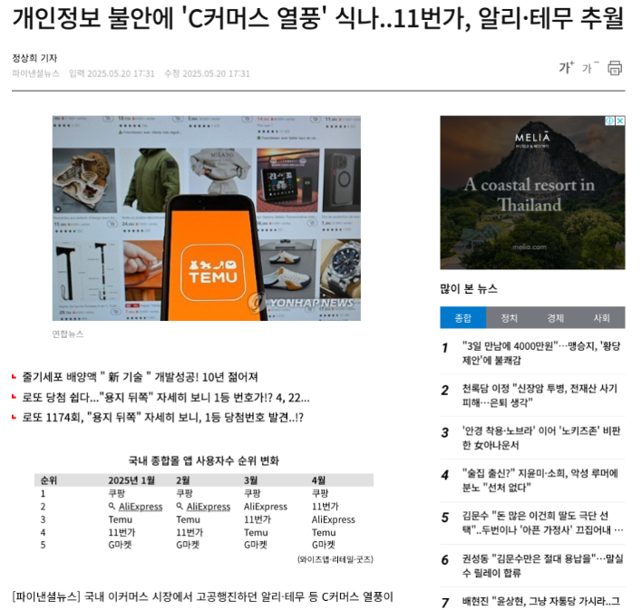 단기간에 국내 이커머스 플랫폼 3위가 되었습니다.