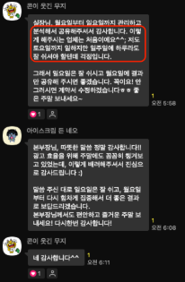 직접 이름을 불러 "정연님, 후기 정말 감사해요.