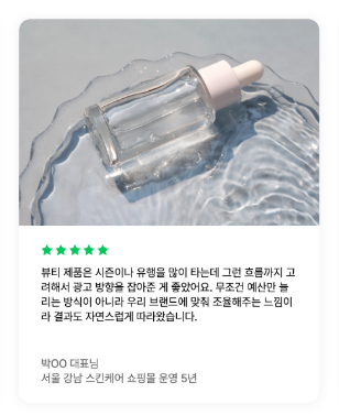 예를 들어, 실제 고객이 화장품을 사용한 후
