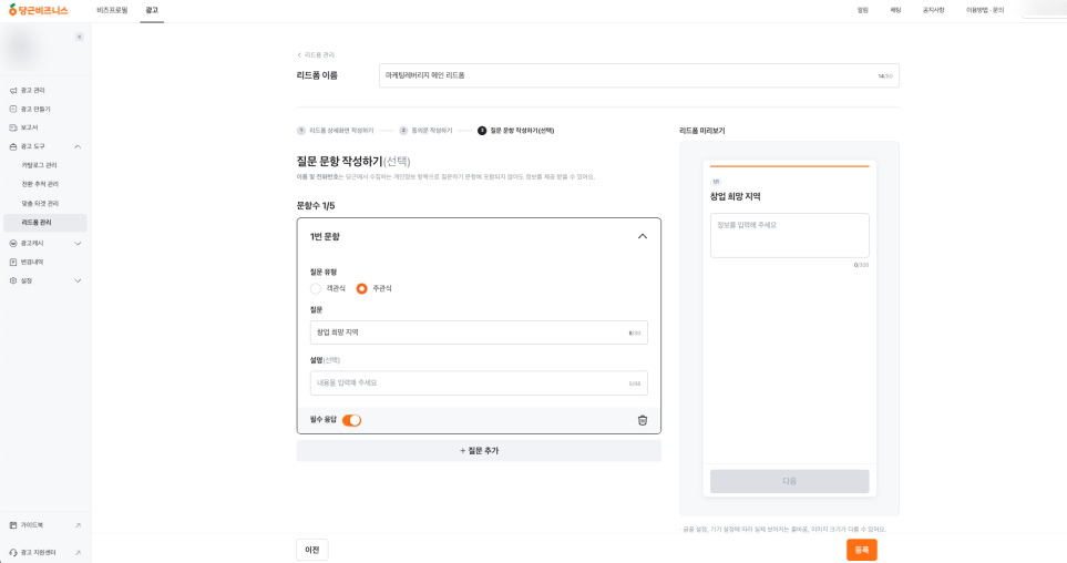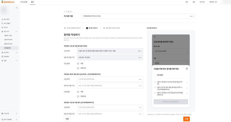 [리드폼으로 고객 확보하기] 광고에 리드폼을 만들어보겠습니다.
