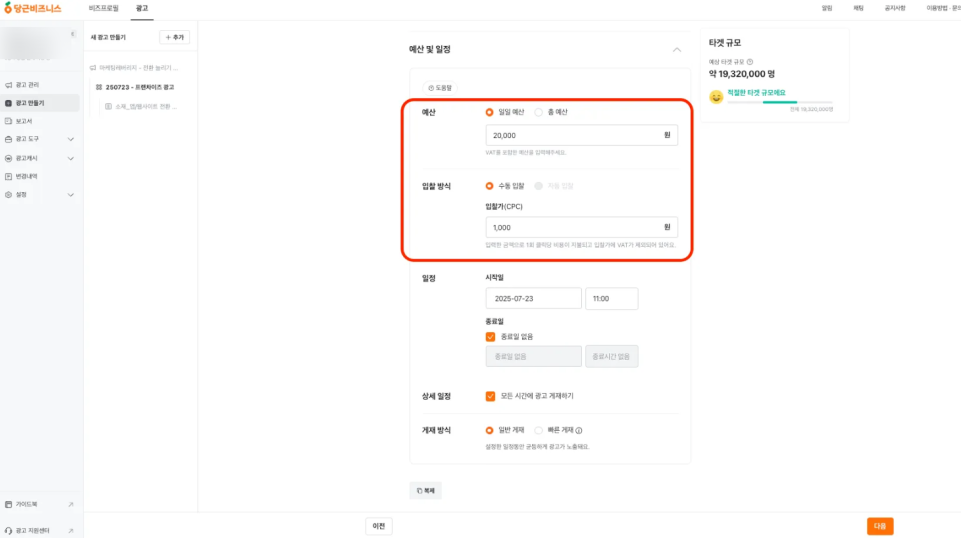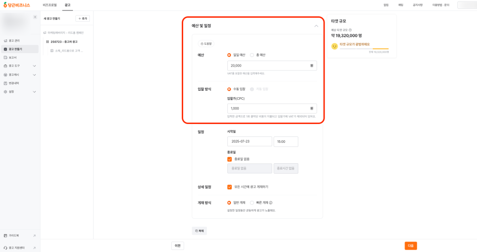 당근 광고는 cpc가 높을수록 우선순위로 노출되기에