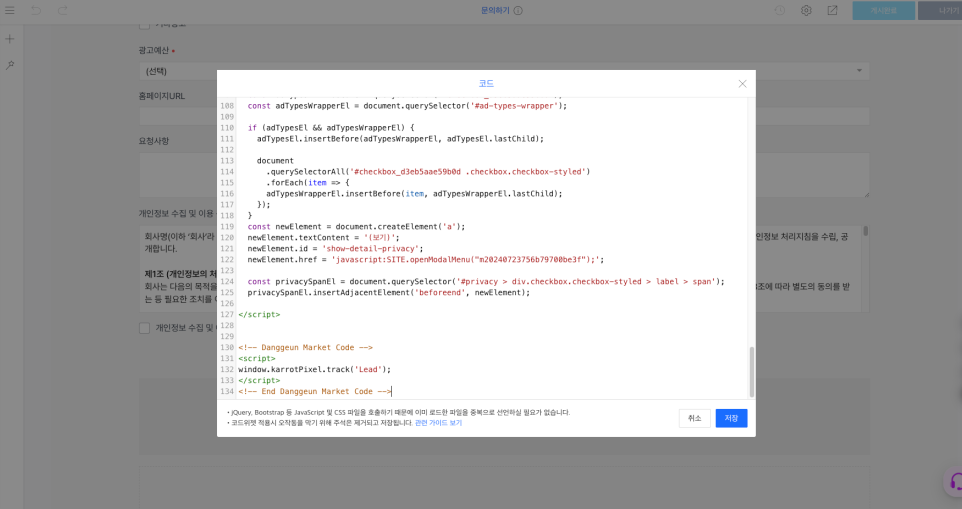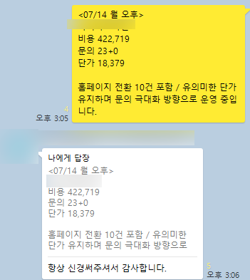 다음은 고객이 광고를 보고 바로 문의 남기는