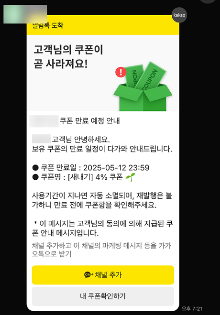 "다 쓰셨죠? 이번 주만 쓸 수 있는 10% 할인 쿠폰을 드려요!"
